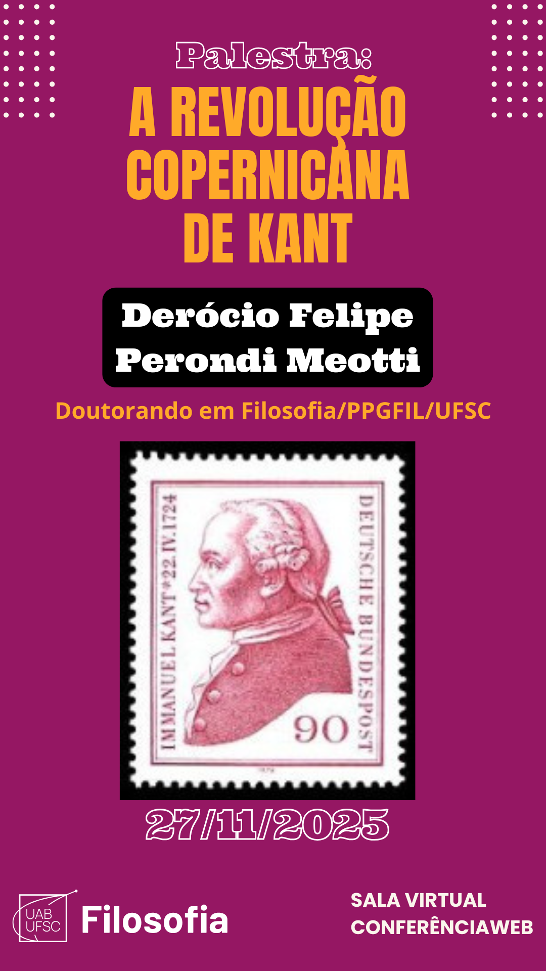 Ciclo de Palestras Temáticas do Curso de Licenciatura em Filosofia EAD/UFSC 2025.2 “A revolução copernicana de Kant”. Doutorando PPGFIL/UFSC:...
